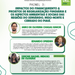 • 14h – Painel 3: Impactos do Financiamento a Projetos de Regularização Fundiária e aspectos ambientais e sociais nas regiões do semiárido, meio-norte e cerrado