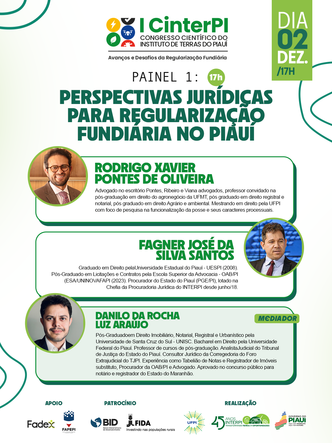 • 17h – Painel 1: Perspectivas Jurídicas para a Regularização Fundiária no Piauí