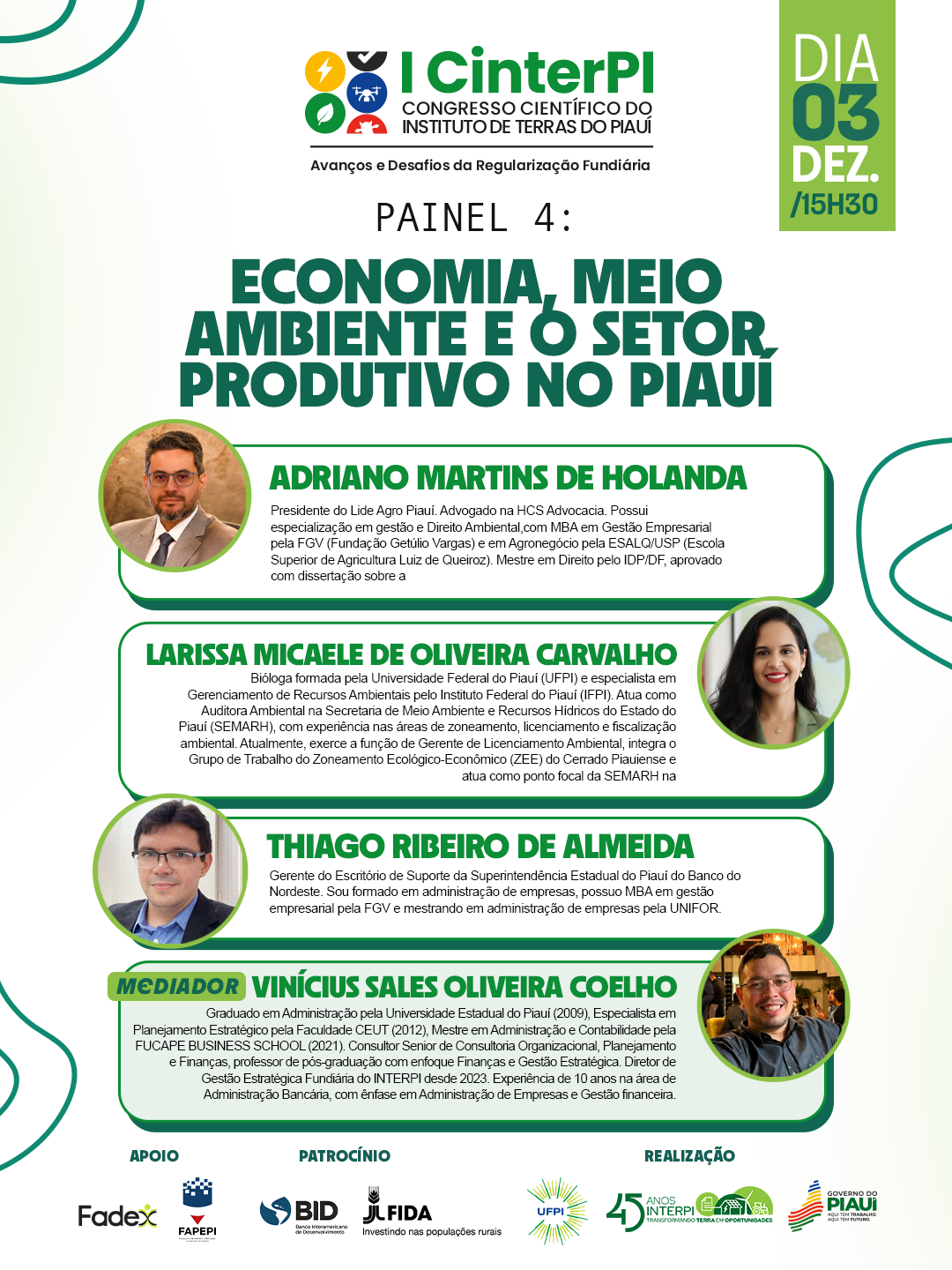 • 15h30 – Painel 4: Economia, Meio Ambiente e o Setor Produtivo no Piauí