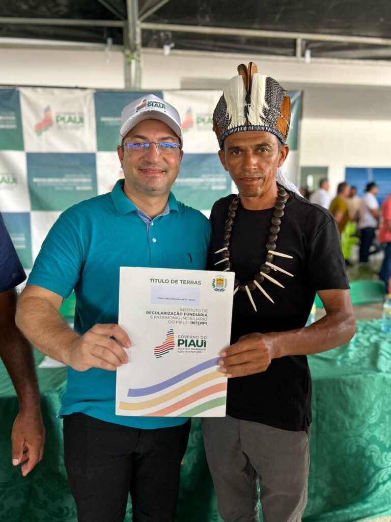 O Instituto de Terras do Piauí (Interpi) realizou, nesta terça-feira, a entrega do Título Coletivo de Território Indígena para a comunidade Bate Maré, no município de Paulistana. Este é o primeiro título de território indígena concedido pelo Governo do Estado na gestão do governador Rafael Fonteles.